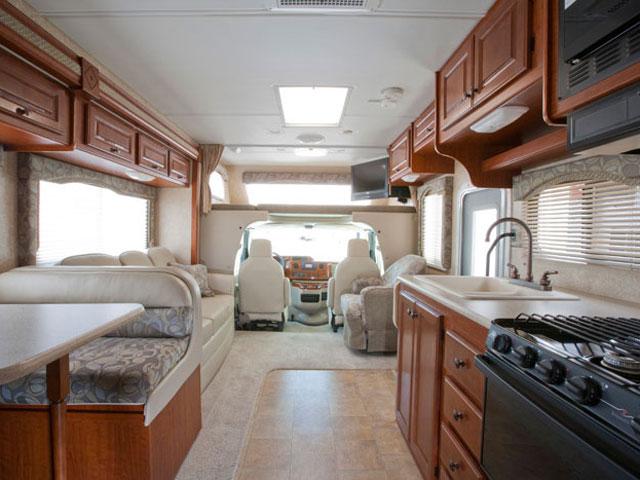 Powered by a V10 engine and automatic transmission with cruise control. AM/FM Radio with CD player, TV/DVD. 4kw Power generator. Cab-over bed (244 x 142cm), a permanent queen size bed (153 x 203cm), the slide out dinette (107 x 185cm) and sofa (104 x 158cm) can be converted into 2 double beds. With the cab-over design and slide out feature this vehicle gives you the flexibility options for your bed configuration and a spacious living area.
